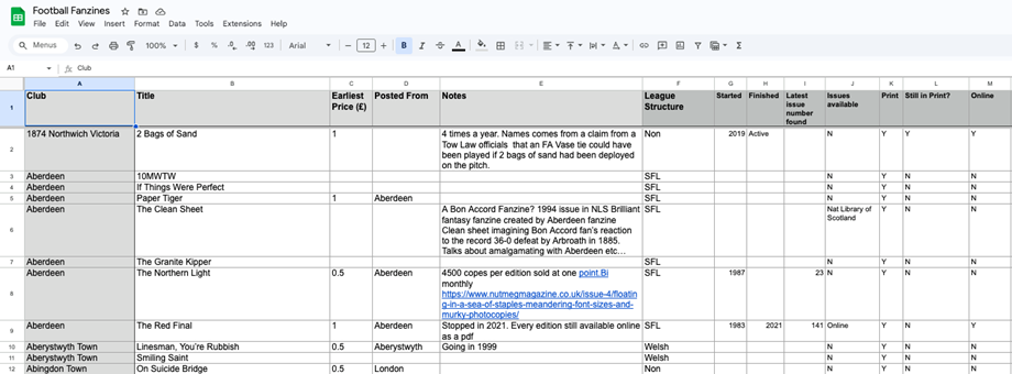 *At time of publication, the list features over 1,700 individual football fanzine titles. Get in touch with us at the Central Library, or directly with Pete via his blog, to access the latest version of the list