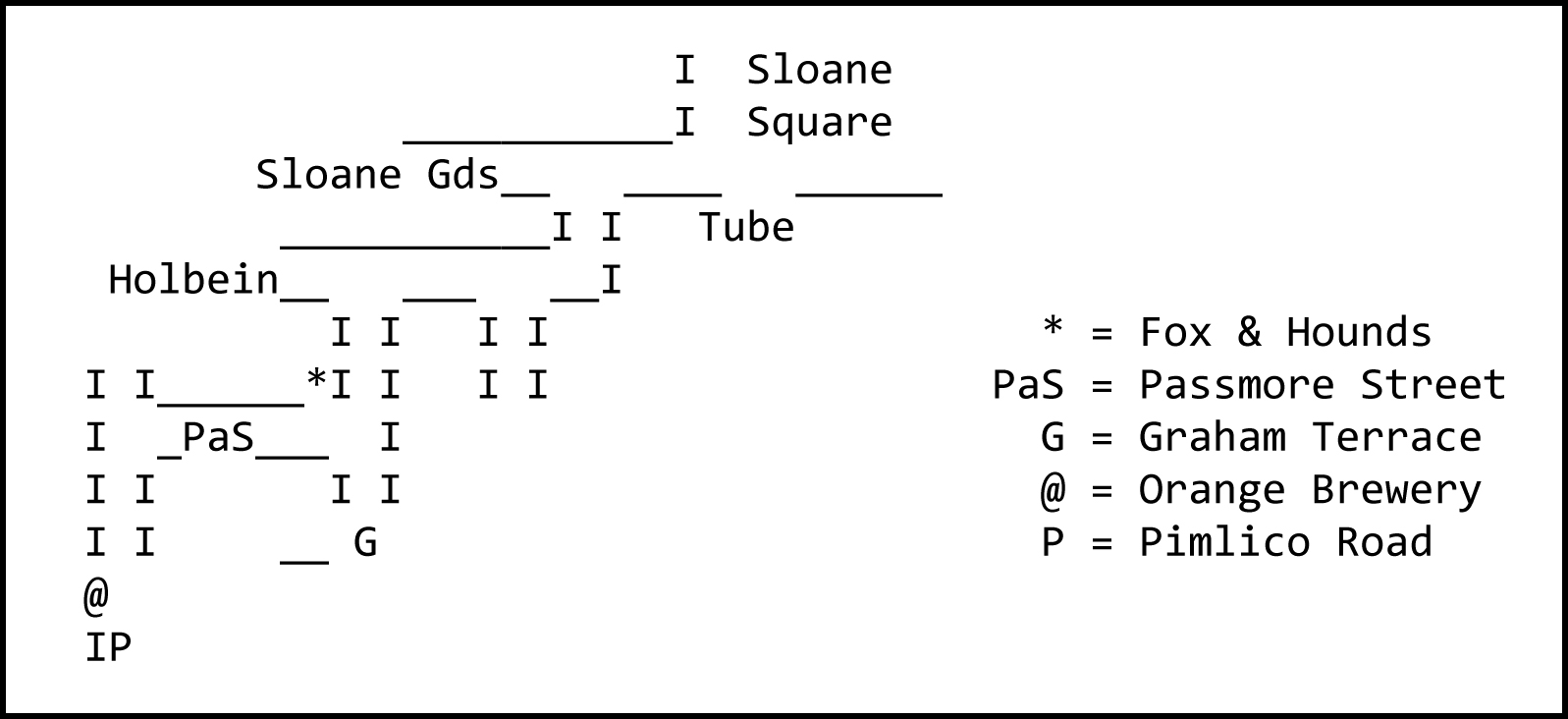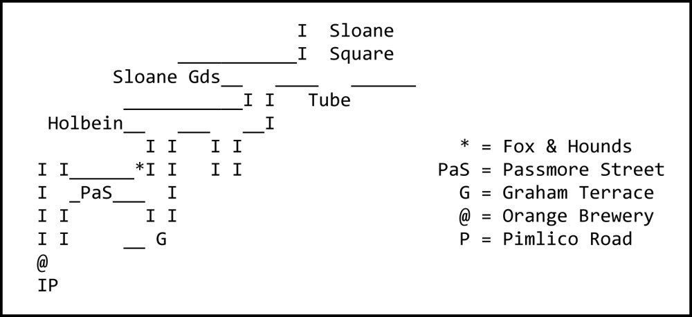 One of the list’s most useful features was the arranging of pre-match meet ups for those going to matches (and meet ups on match days for those members living in far off climes, especially Australia and the USA). In the days before the graphics heavy world of today’s internet, ascii maps were an important part of finding your way to the designated pub for a pre match list meet.
