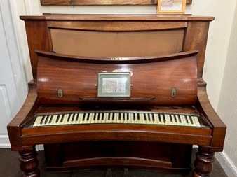 The piano of William and Sarah Stables, now on display in Horsforth Museum. Photograph: Janet Pinder 2025