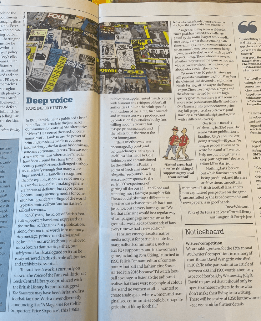 That Football Heritage article makes pleasing reference to football fanzines becoming legitimate material for study and research, collected by archives, libraries, museums and universities. Football writer Dan Gray’s excellent book Saturday, 3pm similarly includes some wonderful passages on the collector mindset of the football fan, ones that speak to the themes of Voice of the Fans but also, beyond that, the importance of archives everywhere: