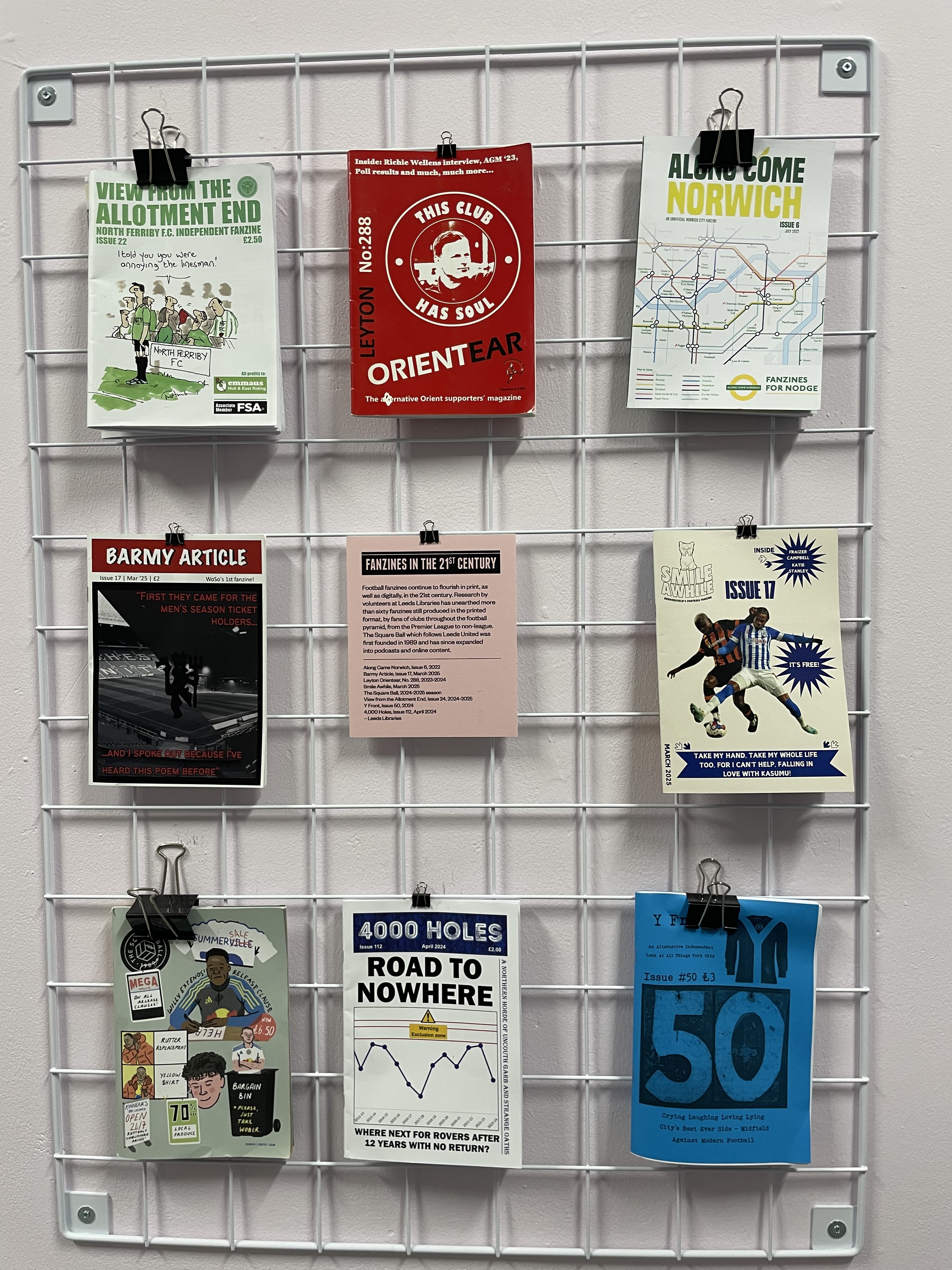 Finally, we want to extend a sincere thank you to everyone who was involved in making the exhibition happen – staff at Leeds Libraries and the British Library, the National Library of Scotland, the National Football Museum; our team of volunteers; all the fanzine creators past and present we’ve engaged with and who’ve offered support, advice, and donations of fanzines; the exhibition design team (Instruct) and the technicians, painters and couriers who’ve done the kinds of physical labour that largely goes unseen in exhibitions and gallery spaces; and, of course, you, the public, the visitors to the exhibition, everyone who’s given us feedback and attended events, and engaged us in conversation, or told us their stories. We cannot thank you enough.