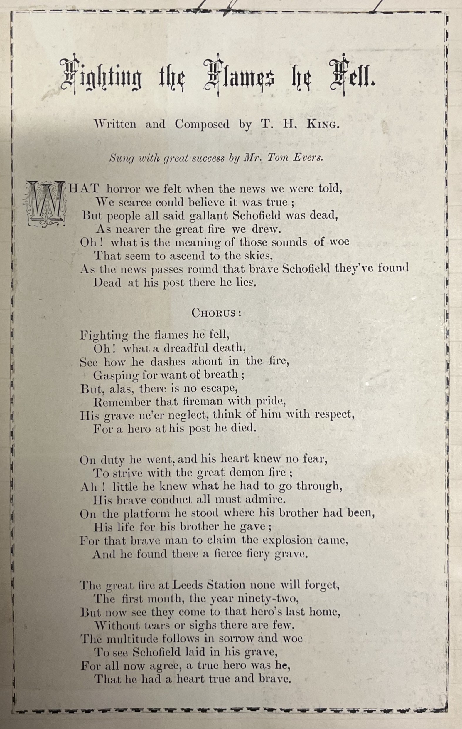As early as the 22nd January 1892, a scheme was begun to create some kind of memorial to Schofield. A monument now stands in St George’s Fields on the University of Leeds grounds. It pays tribute the Schofield and other firemen who died in service.