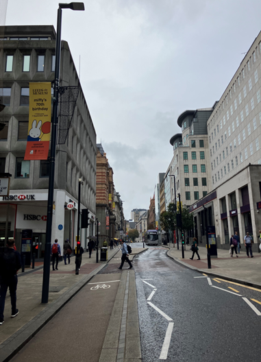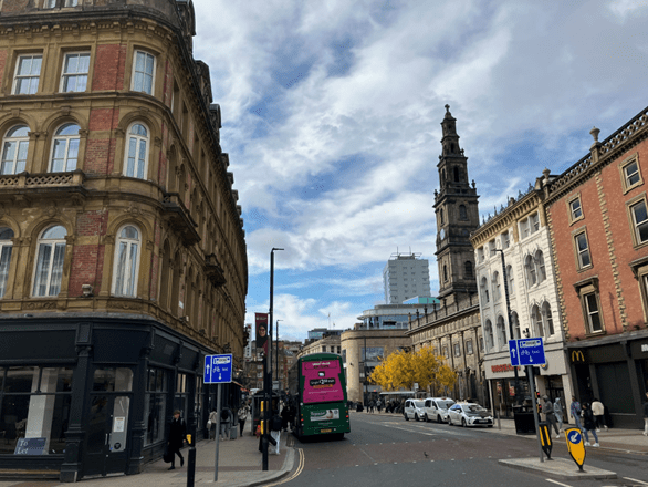 The same location on Boar Lane today by Janet Pinder, 2025