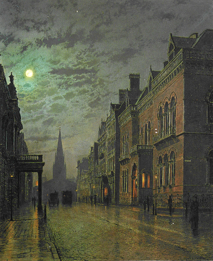Boar Lane, Leeds by lamplight (1881) by John Atkinson Grimshaw | WikiArt Store