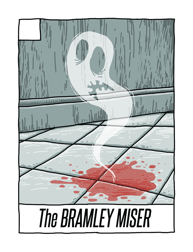 The miser’s soul cannot rest, for Oliver died a violent death. Until that blood stain wears away he must return to count and recount his chinking coins while he chuckles in glee at the way the blood thirsty thief was foiled.