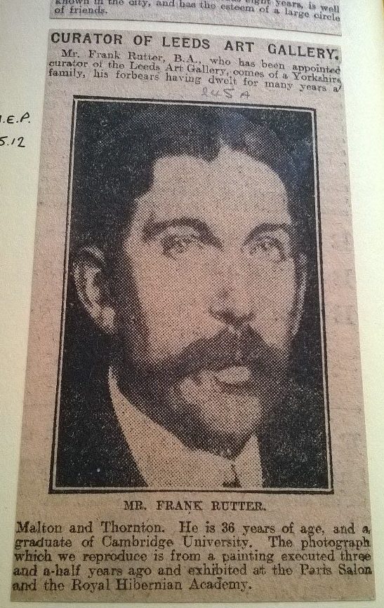 Frank Rutter became the Curator and then Director of the Art Gallery in 1912. He was a member of Leeds Arts Club and the secretary of the Men’s Political Union for Women’s Enfranchisement. When Lilian Lenton was granted a short release from jail in June 1913 following her hunger strike at Armley Jail she was taken to Frank Rutters house West Field Chapel in Chapel Allerton. Here a daring escape plan was put into action to whisk Lilian out of Leeds so she could not be re- arrested. She escaped from under the police who were watching the house by dressing as an errand boy and leaving in a Grocers Van. The Rutters claimed to have been away that day and did not get back until the evening when Lilian had gone. It was then rumoured in the press that Lilian had then caught a taxi to Harrogate then on to Scarborough. However this has never been proved and the Leeds Mercury implied on June 4th that it was all another part of the rouse to “throw the police off the scent”.