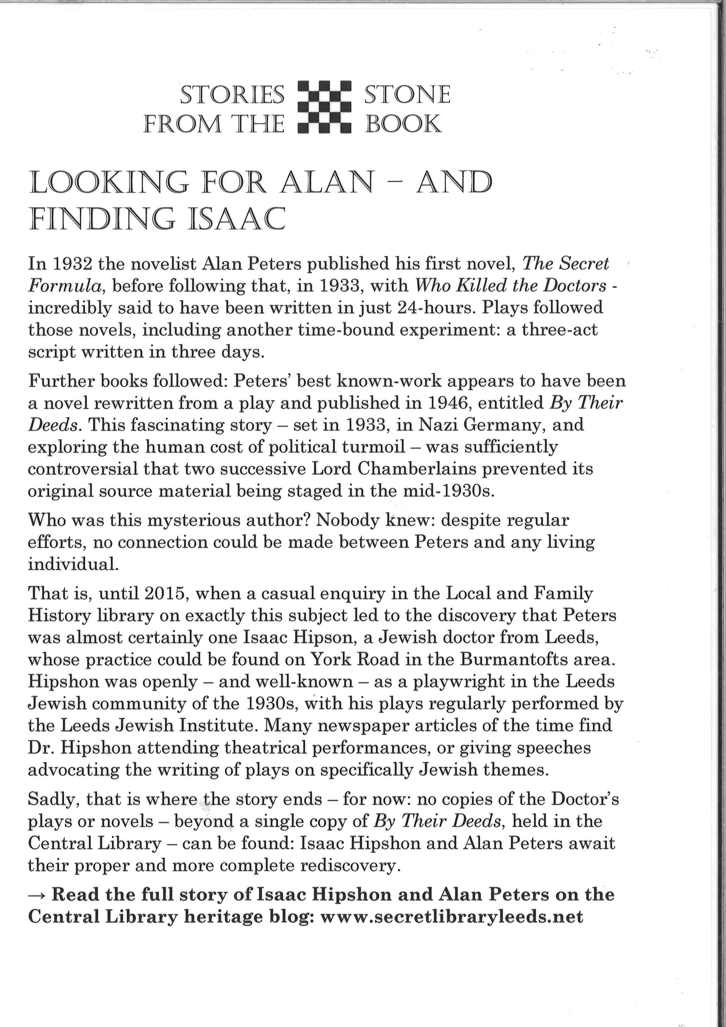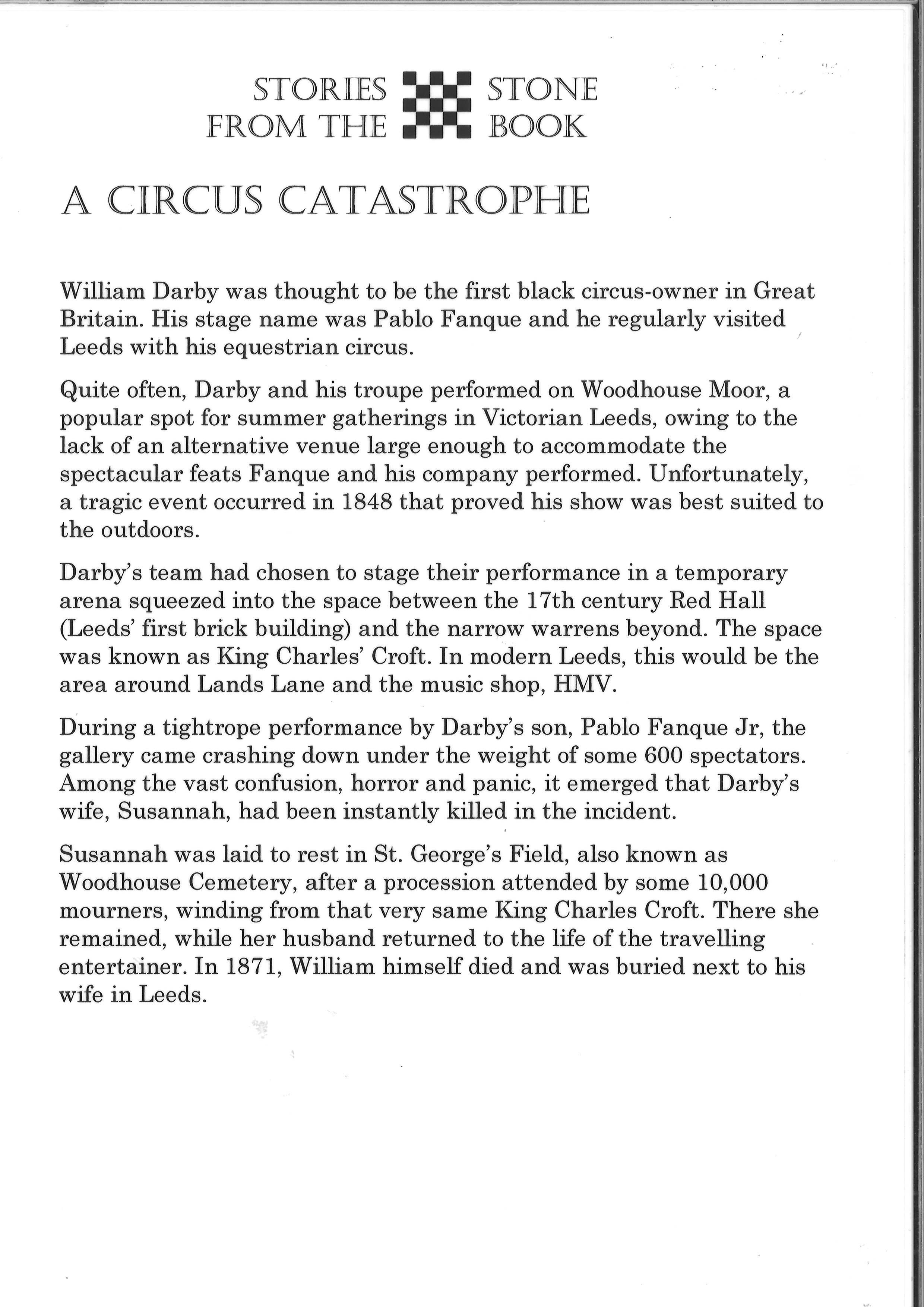 Series of short stories from Leeds and its past – put together by our Librarian team for the Pop Up and Play festival in Victoria Gardens a few years ago, and archived here for readers to enjoy at their leisure.